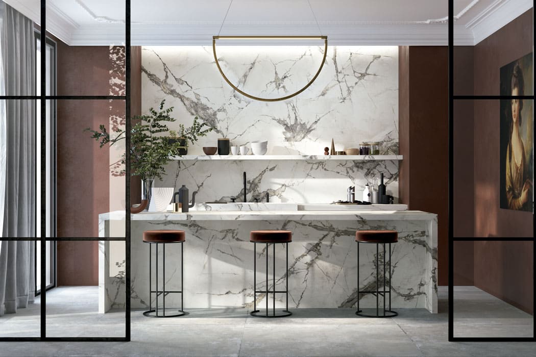 - Permite una fácil limpieza ya que está diseñada con un material resistente a cualquier daño; además, se trata de una superficie no porosa (repele el agua) y no tiene ningún otro tipo de elemento que sobresalga a parte del porcelánico.